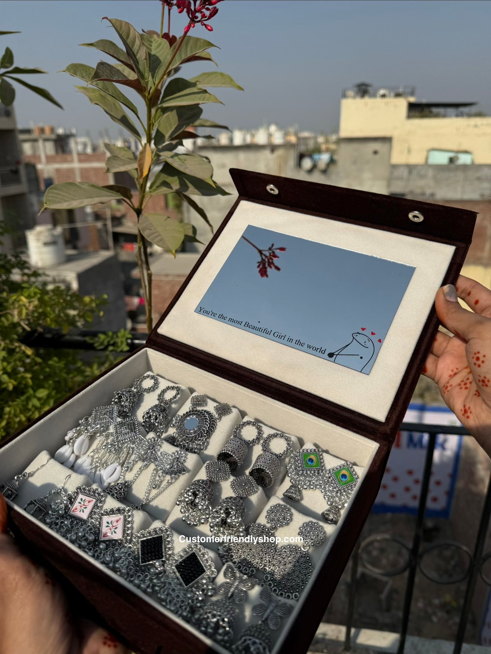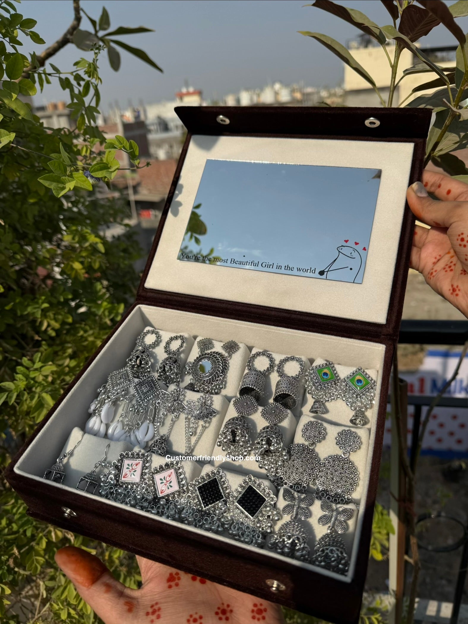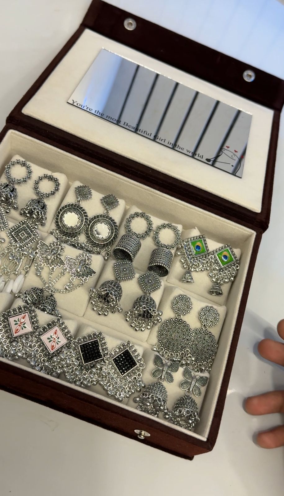 12 Pair Jhumka with Box & Mirror🪞✨